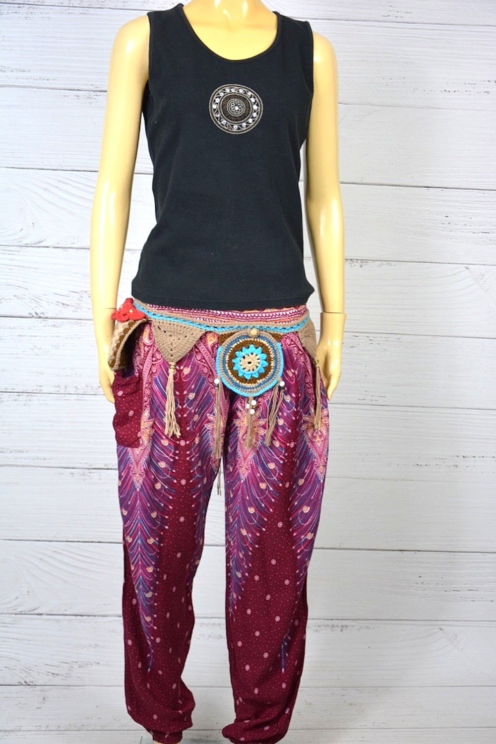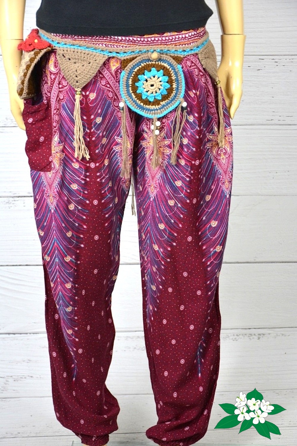 Wzorzyste spodnie baggy pumpy boho S M