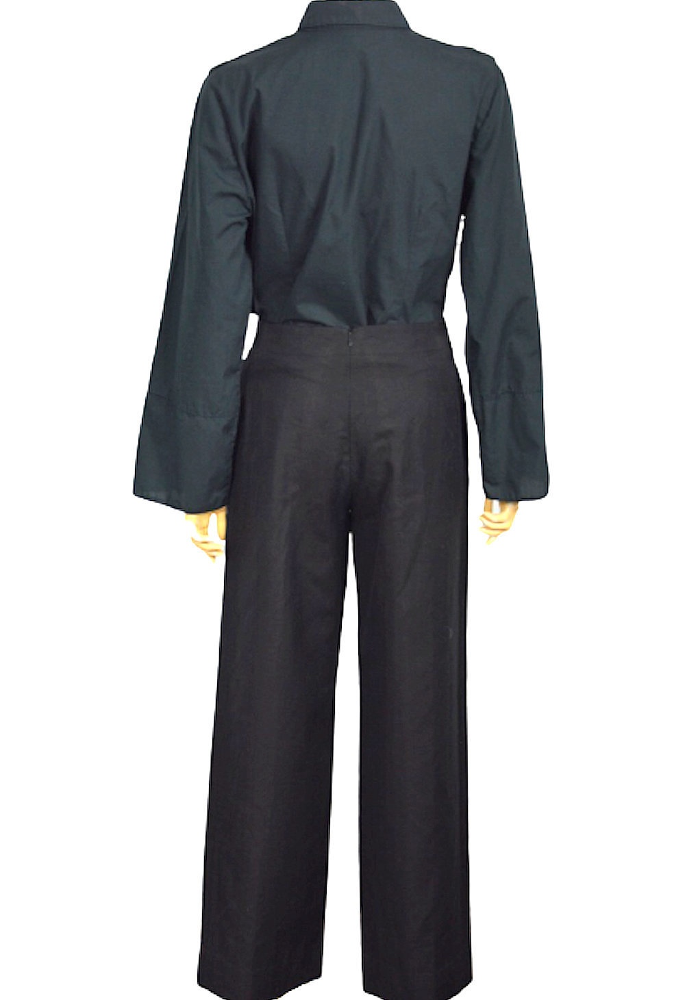 Madeleine eleganckie proste szerokie spodnie palazzo z bawełny i lnu S M