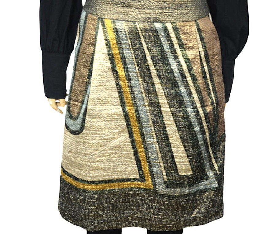 spódnica ma przepiękną kolorystykę, tkanina jest lekko chropowata w dotyku i lekko się mieni