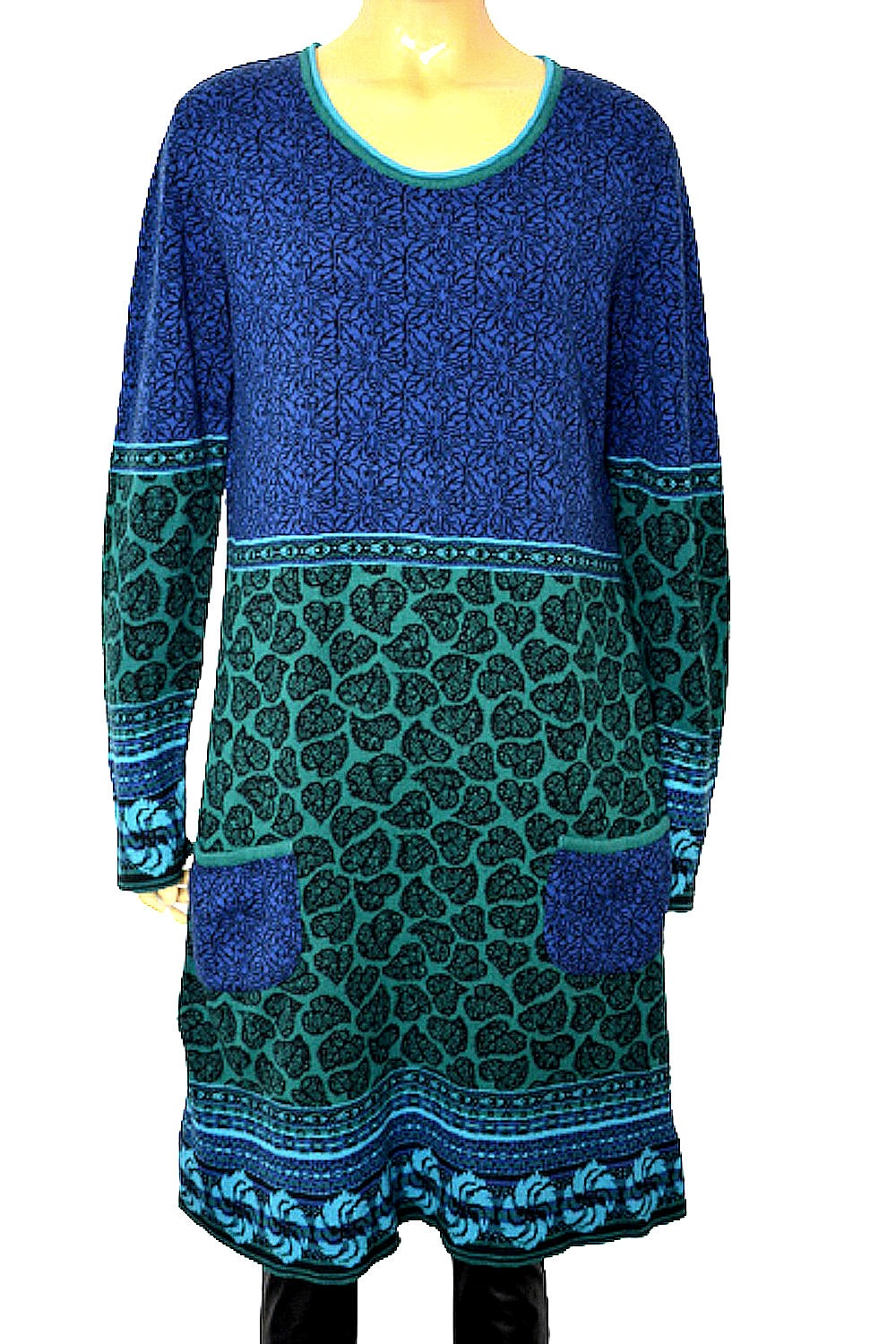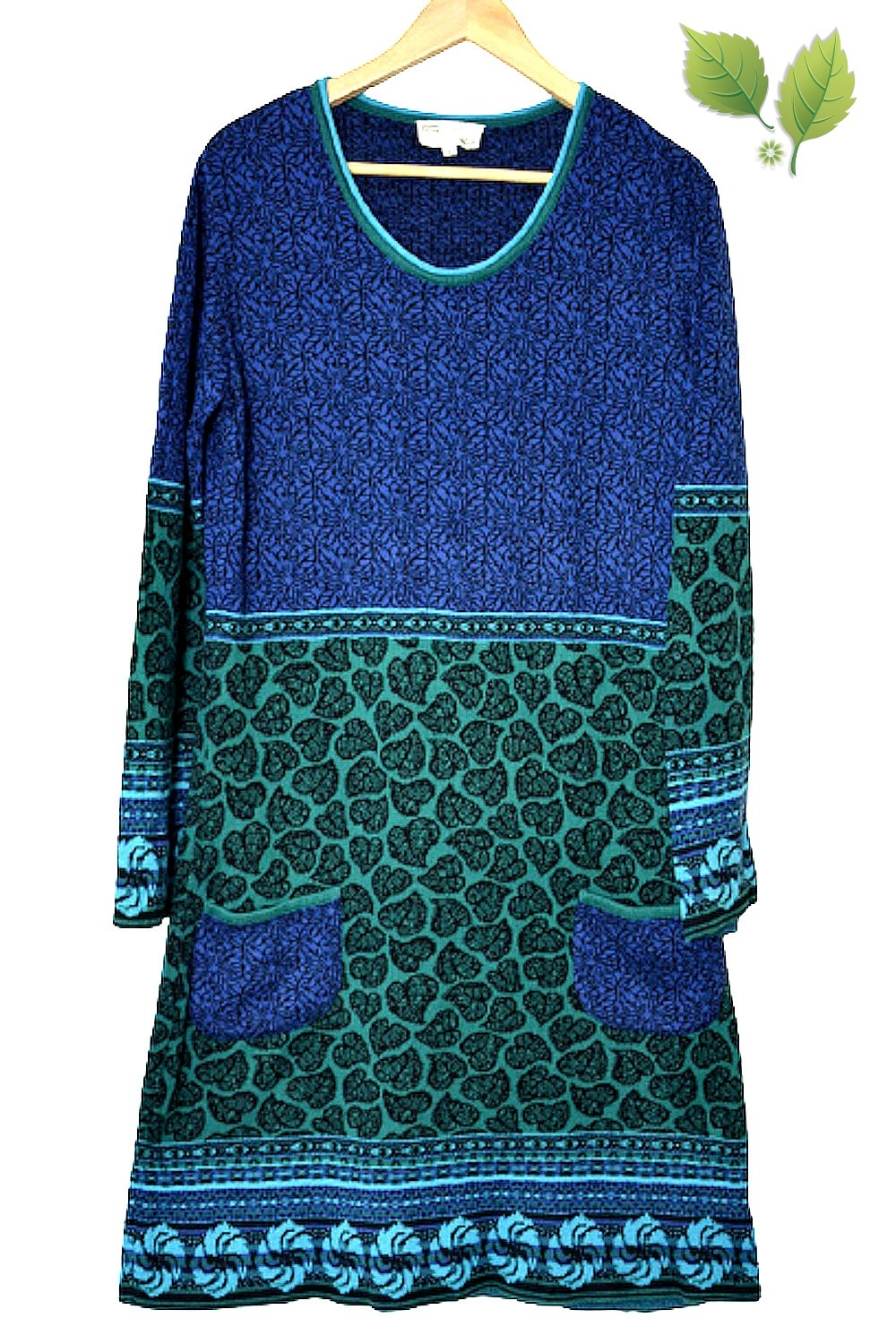 Fantastyczna sukienka w śliczne wzory w super kolorach wykonana ze "sweterkowej" bawełny organicznej