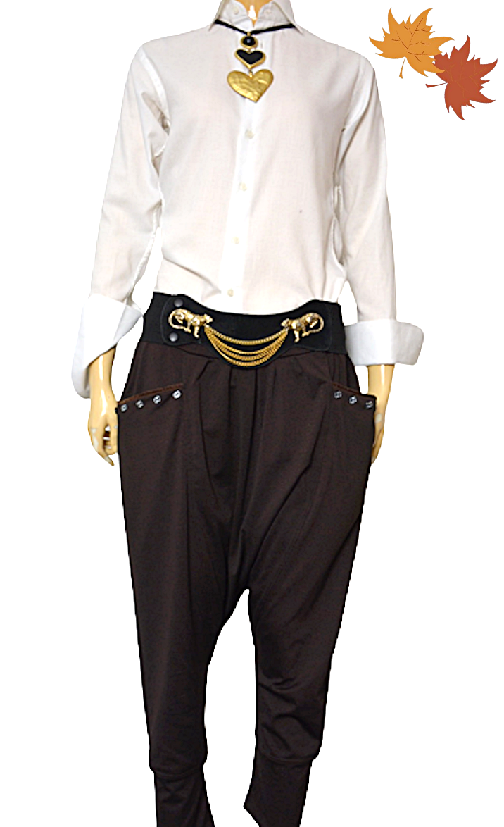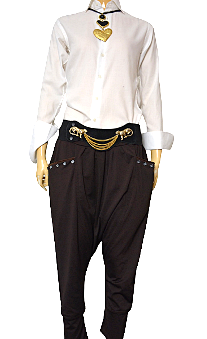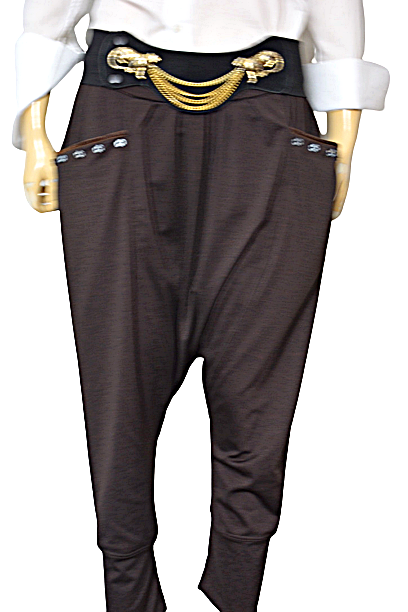 Spodnie baggy jedwab z obniżonym krokiem M L XL
