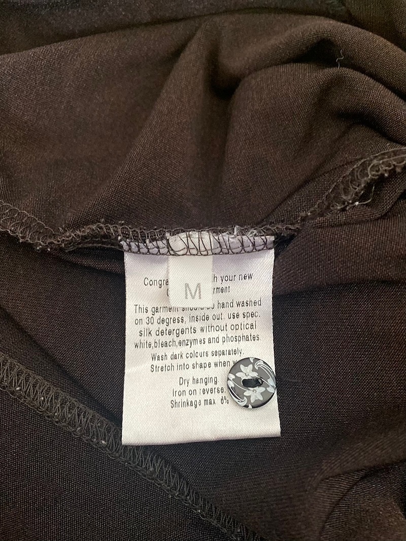 Materiał: 47 % jedwab, 47 % poliester, 5 % spandex
