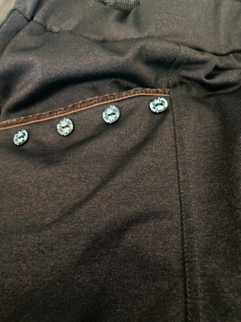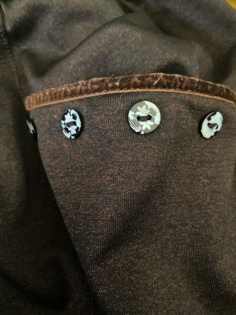 przy kieszeniach obszyte ozdobnymi guzikami