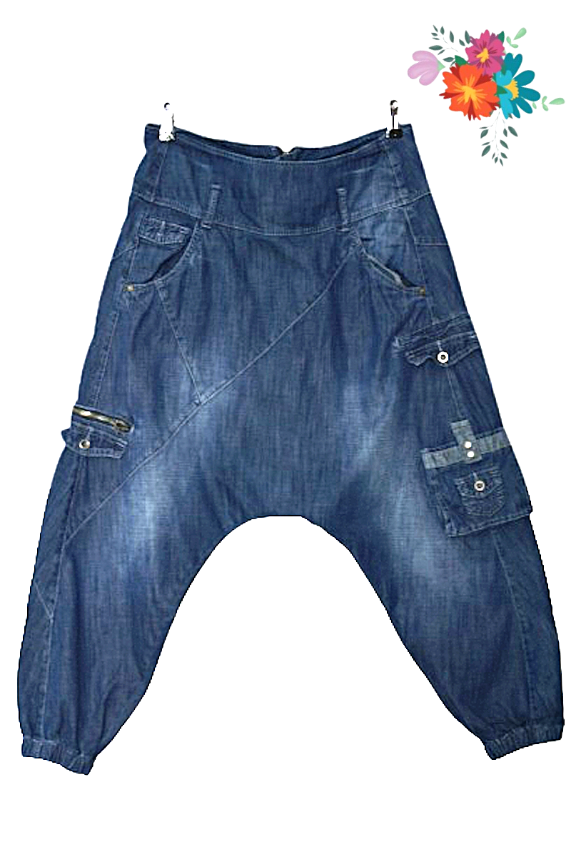 Azura Harem Cargo jeansowe spodnie baggy rock niski krok L XL